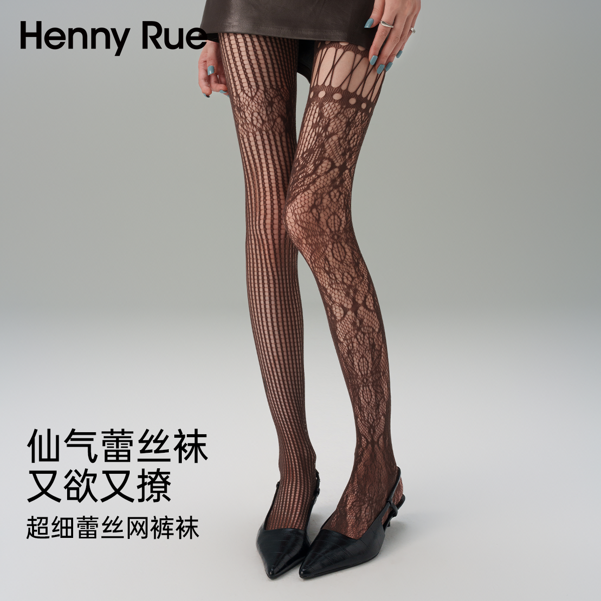 HENNY RUE亨尼露春夏女士超细蕾丝性感网袜连裤袜子渔网袜