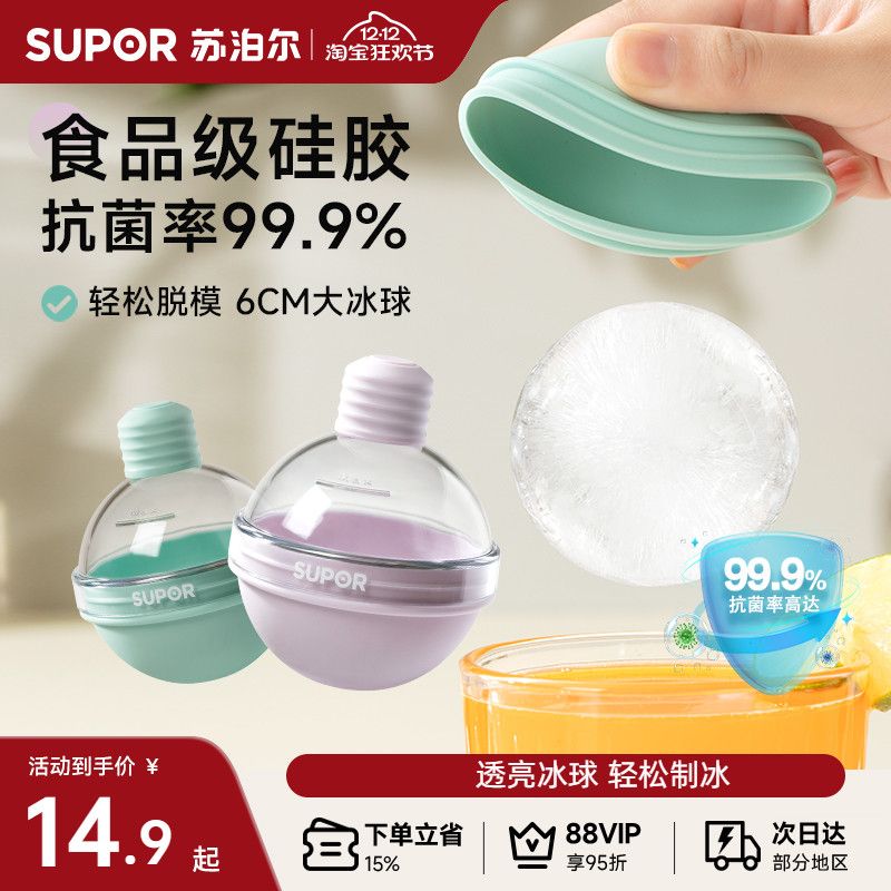 苏泊尔冰球模具威士忌圆形冰格灯泡圆球家用食品级制冰盒冰块神器