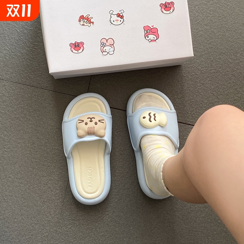 秋季新款可爱萌猫猫鱼鱼ins凉拖海边室内防滑透气eva一字拖女