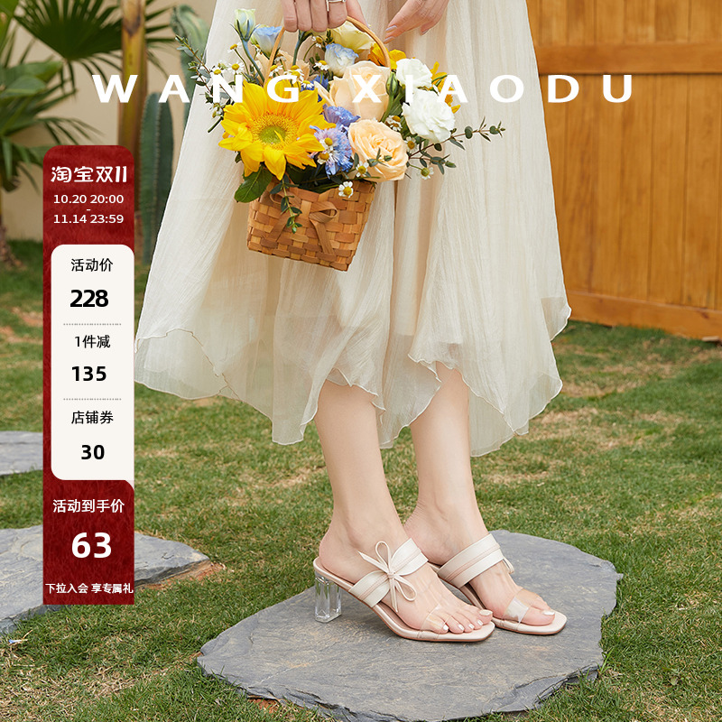 【王小毒】水晶蝴蝶○6.5cm增高~透明带一字拖女夏新款粗跟水晶