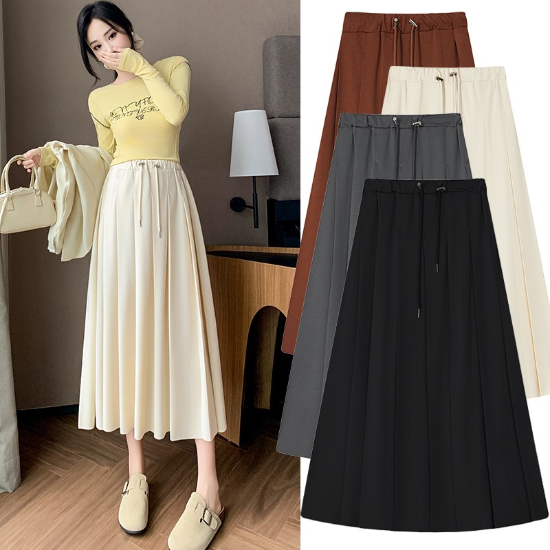 孕妇百褶裙子韩版春装2025新款中长款A字显瘦杏色托腹半身裙春季