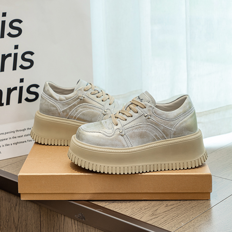 港风ulzzang小白鞋女增高2025春季新款软底板鞋真皮厚底休闲鞋女