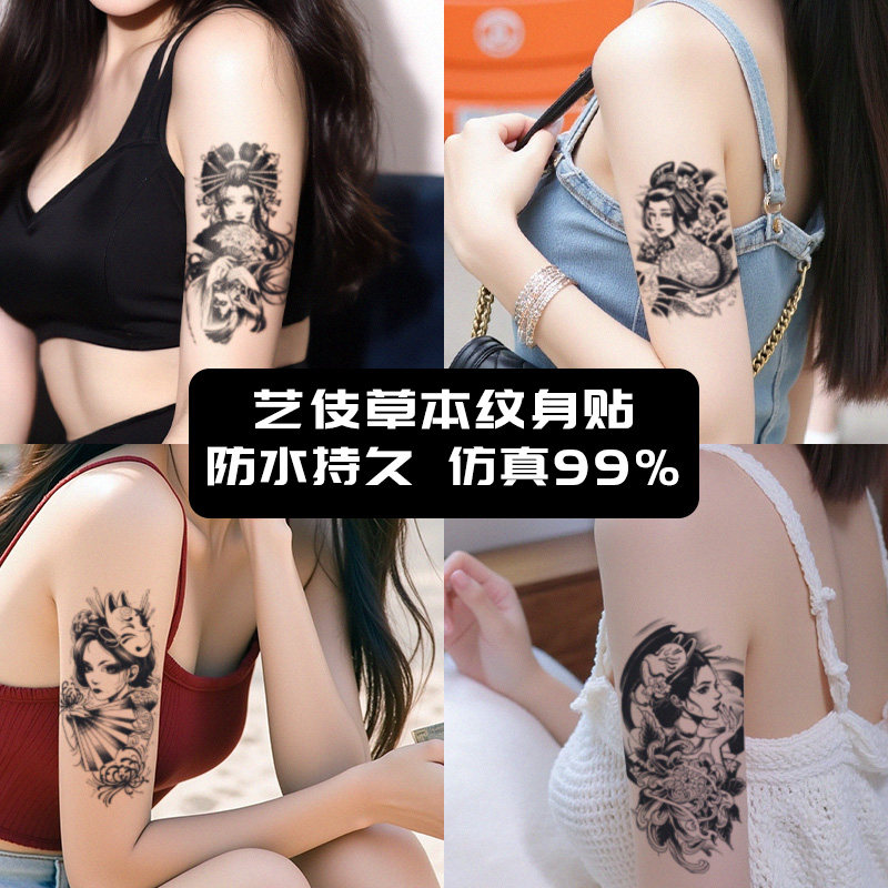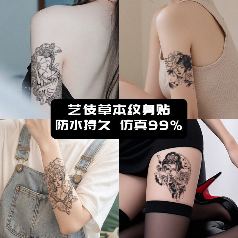 日式艺伎 草本纹身贴女防水持久高级果汁逼真花臂腿部防搓不反光