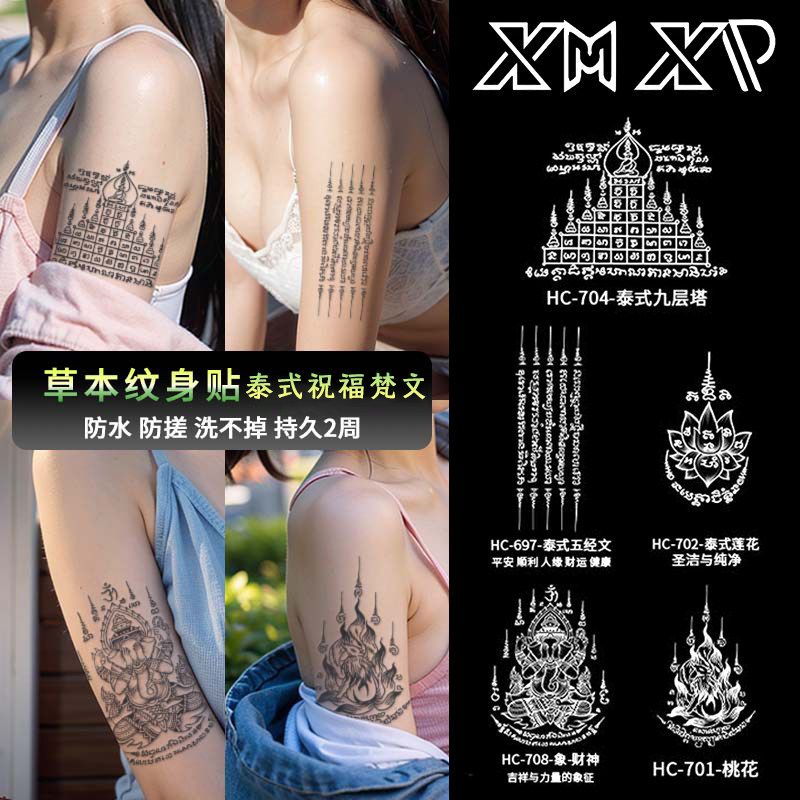 XMXP草本纹身贴后背泰国刺福五经梵文藏文防水逼真持久高级感花臂