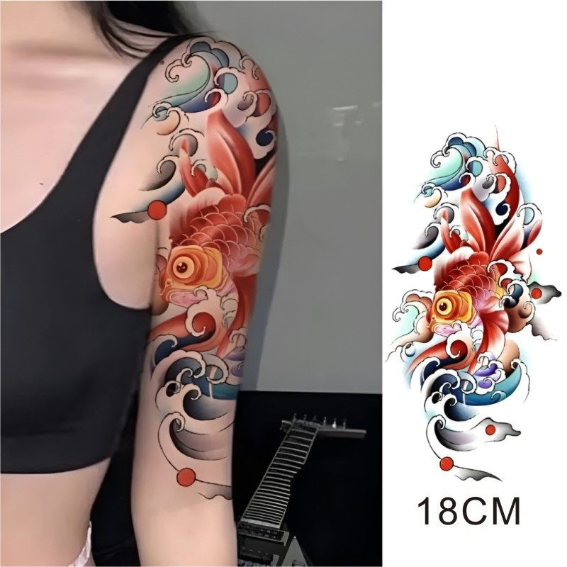 ins风好运锦鲤纹身贴彩色逼真 仿真防水持久甜妹水逆退散花臂半臂