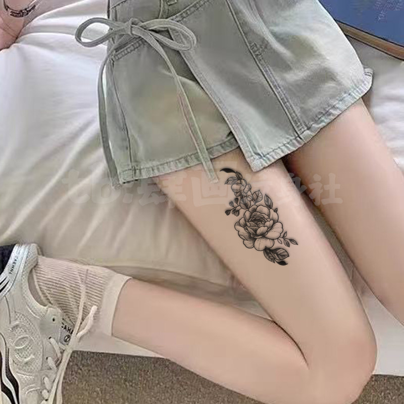 高级素花草本果汁纹身贴大腿锁骨男女花臂刺青防水防搓不反光逼真