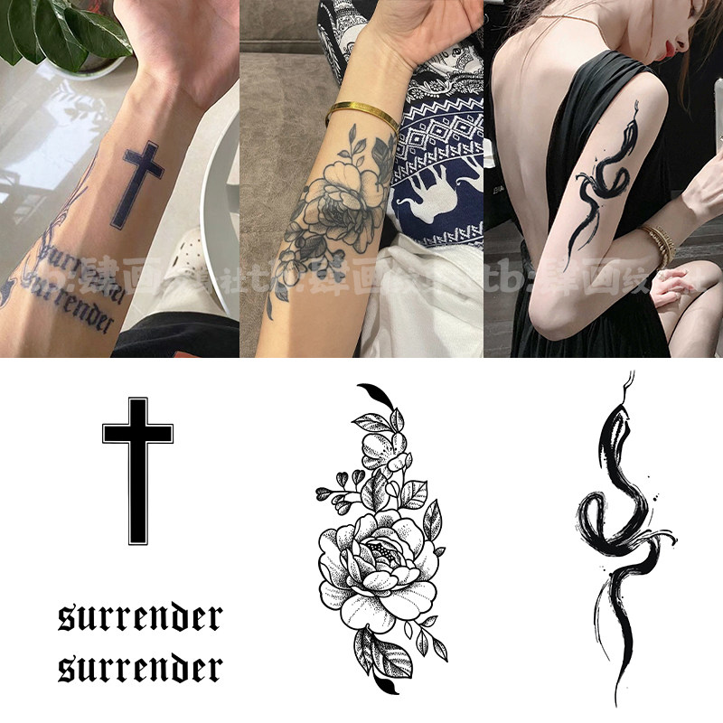 欧美os纹身贴oldschool传统玫瑰花十字架大腿手臂花臂防水逼真ins