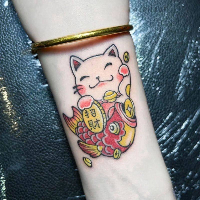 招财猫纹身可爱彩色卡通防水逼真鲤鱼持久ins花臂手腕男女贴纸潮