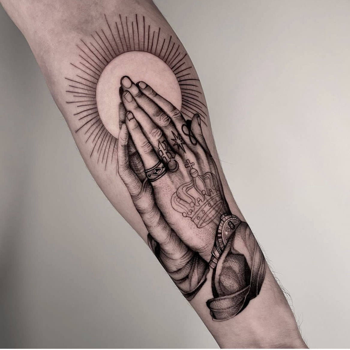 上帝财运之手草本纹身贴半永久花臂防水持久逼真炫酷大图不反光潮