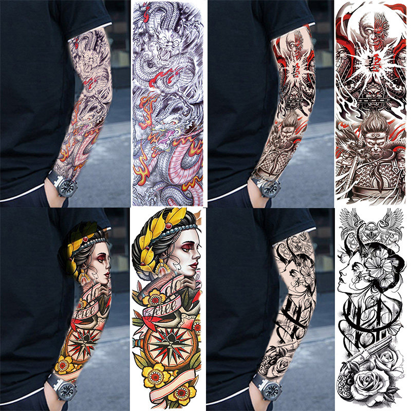 艺妓纹身贴防水男女持久全臂仿真刺青般若大花臂逼真身体彩绘贴纸