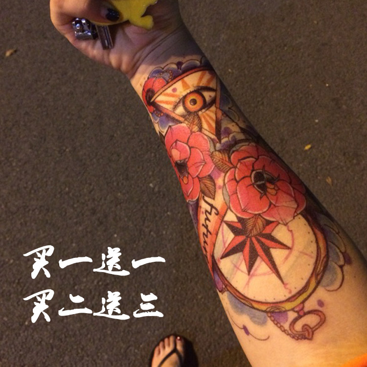 花臂纹身贴 防水 持久 逼真 男女3D立体个性刺青 彩色玫瑰花图腾