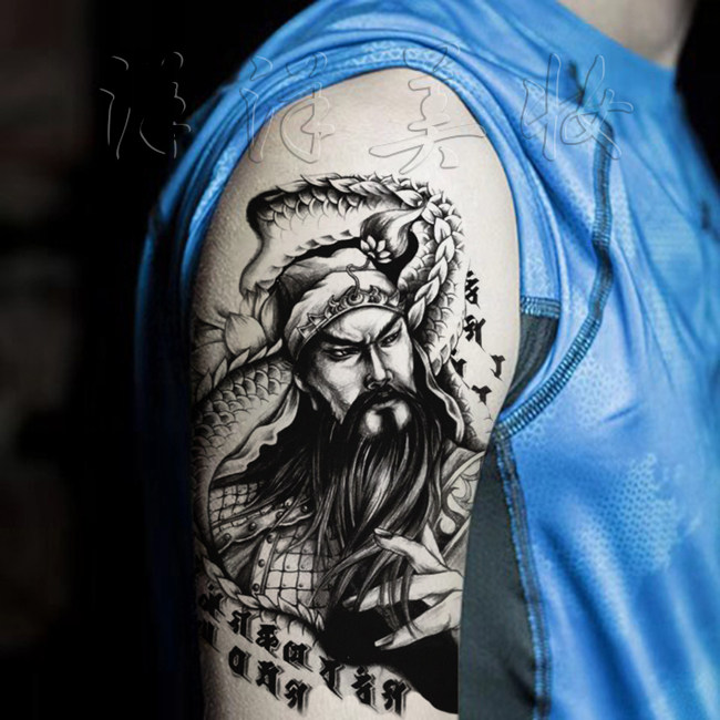 花臂纹身贴防水男女大图逼真持久关羽关公关二爷手臂手腕刺青贴纸