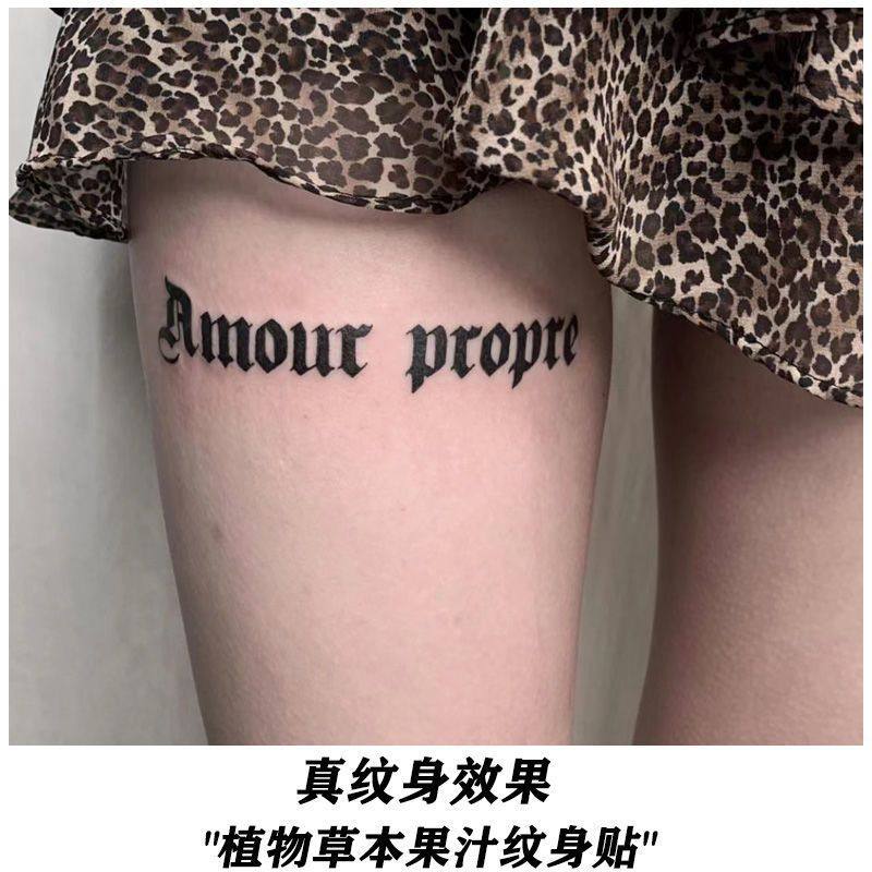 花体英文大腿 花臂纹身贴草本半永久 防水持久逼真不反光潮酷男女