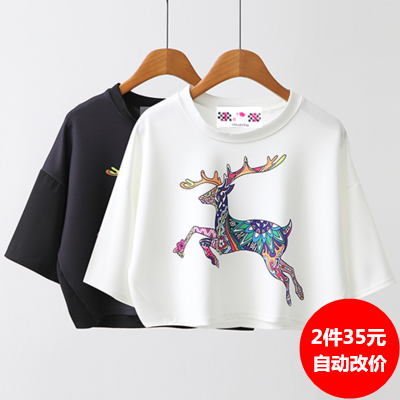 半袖女夏 宽松 韩版 上衣 短款[第1名]