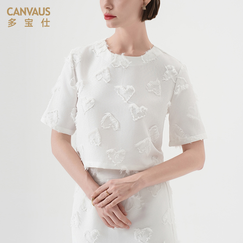 多宝仕夏季短袖宽松t恤女流苏短款圆领半袖小众设计拉链韩版上衣