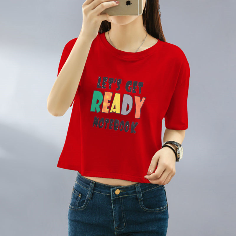 漏肚脐上衣宽松红色短款t恤女短袖高腰露脐装衣服2019韩版半袖夏