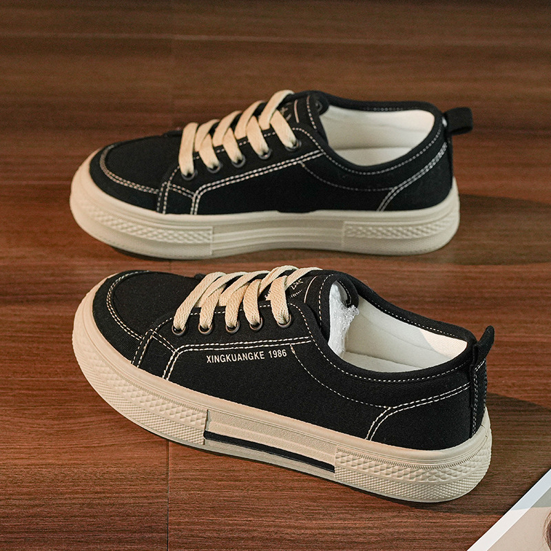 春秋季新款百搭黑色韩版帆布潮牌休闲鞋潮流学生鞋低帮女鞋 情侣