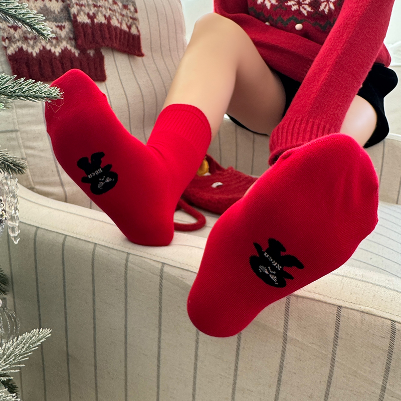 秋冬袜子女中筒红色饰品袜ins潮韩版本命年堆堆袜马年鸿运长筒袜