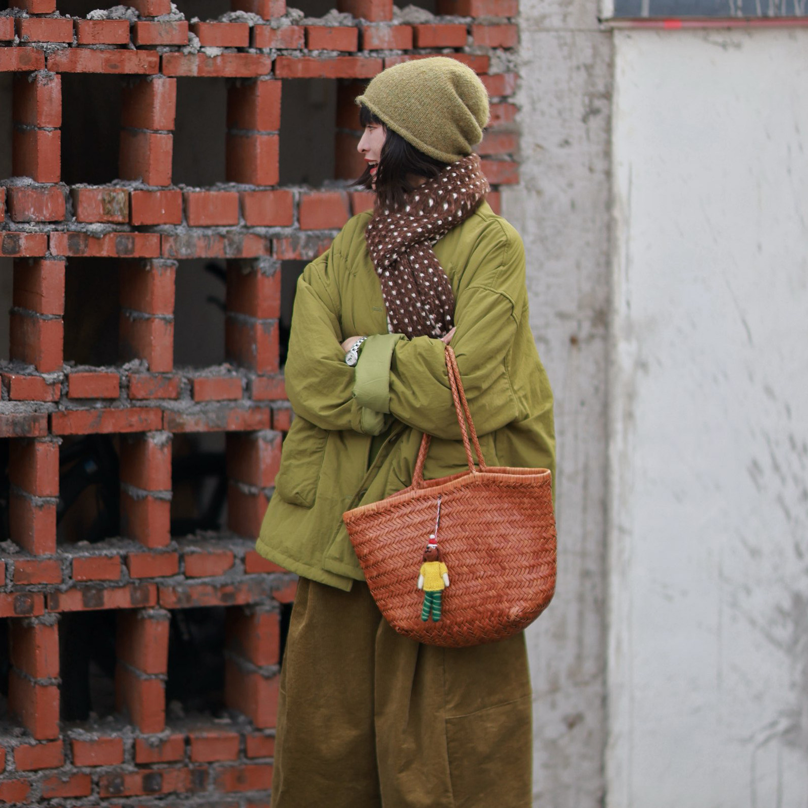 复古文艺民族风东北大花棉麻棉服女宽松显瘦加绒保暖连帽斗篷风衣
