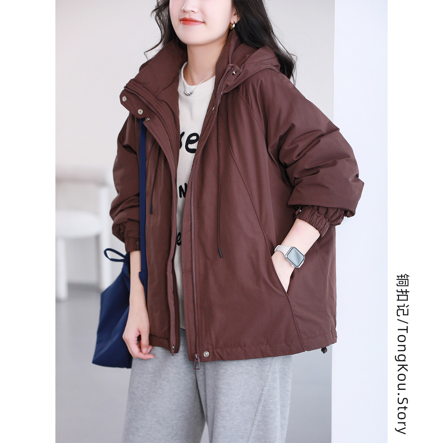 定制进口高密棉两面穿外套女廓形感风衣抽绳摆冲锋衣外搭开衫秋款