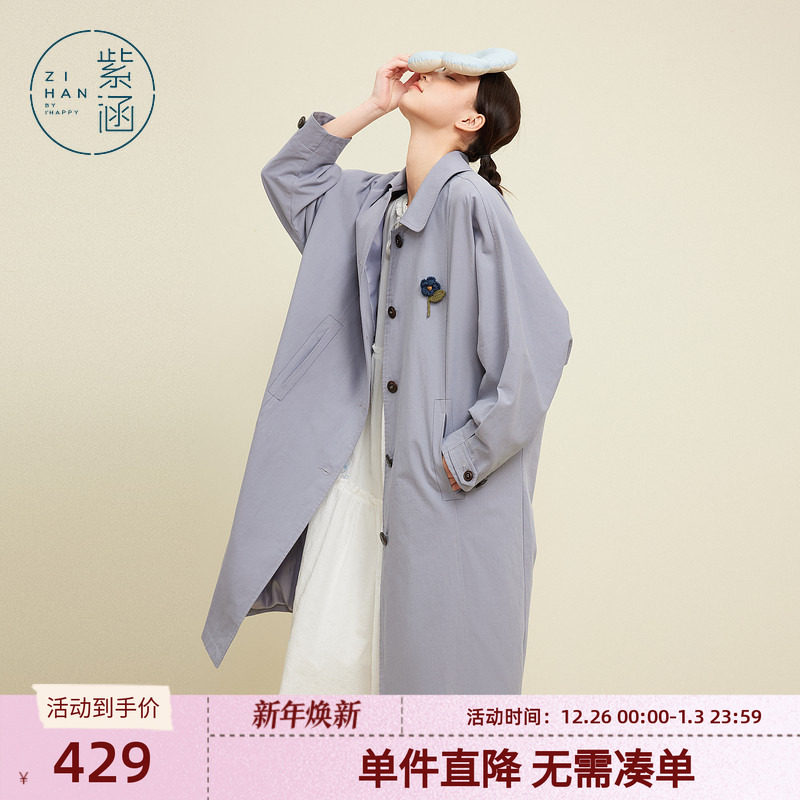 紫涵日系中长款风衣女外套春秋季宽松氛围文艺巨好看休闲风衣大衣