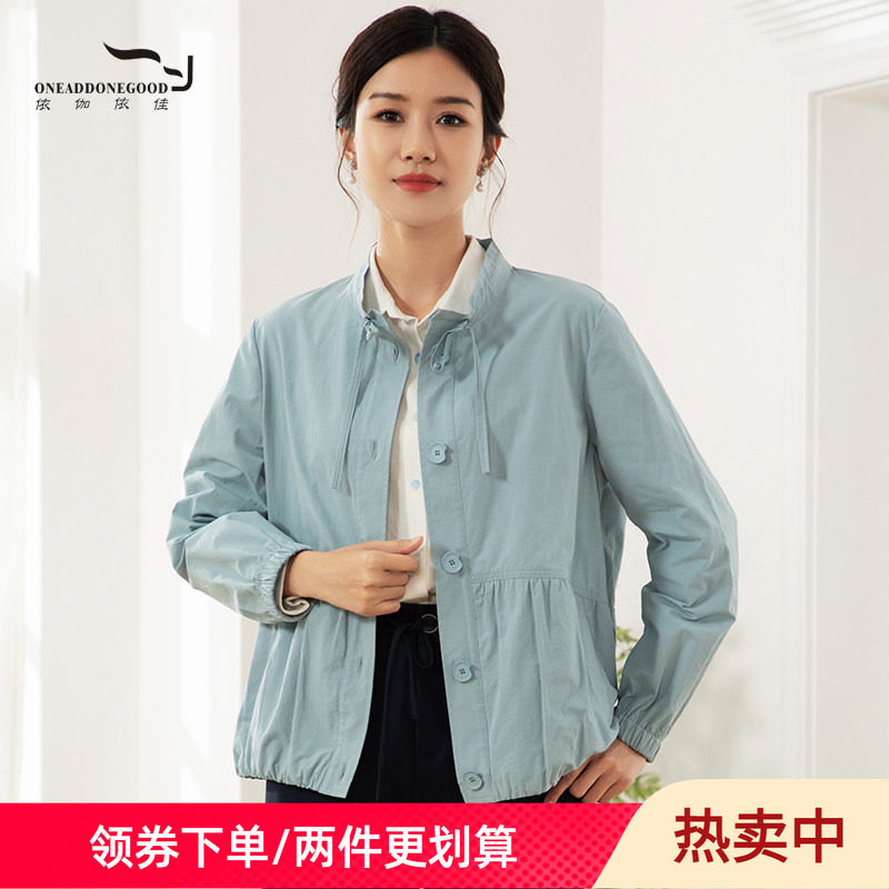依伽依佳2025春季新款纯色文艺休闲减龄立领风衣外套女EWCW006