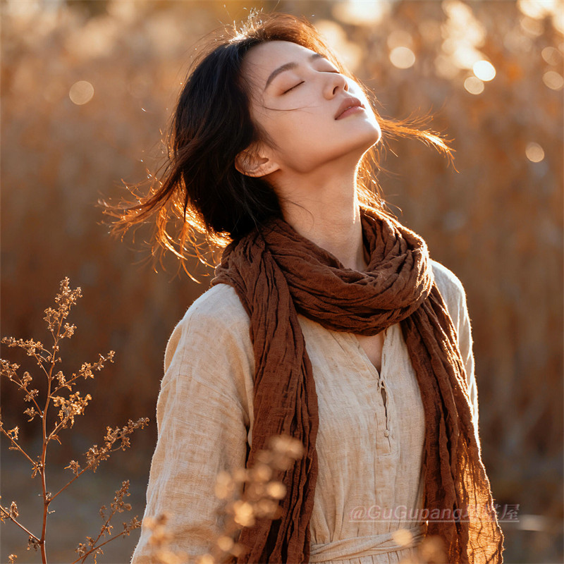 复古文艺棕色棉麻围巾女秋冬款亚麻褶皱风衣丝巾气质百搭系脖披肩