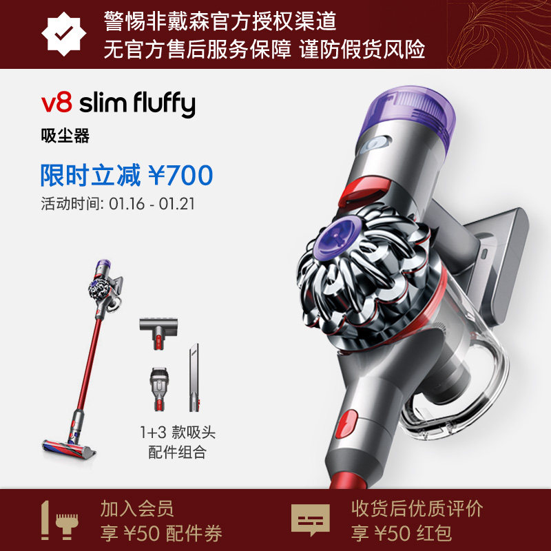 Dyson戴森V8SlimFluffy无线轻量吸尘器家用大吸力官方旗舰正品