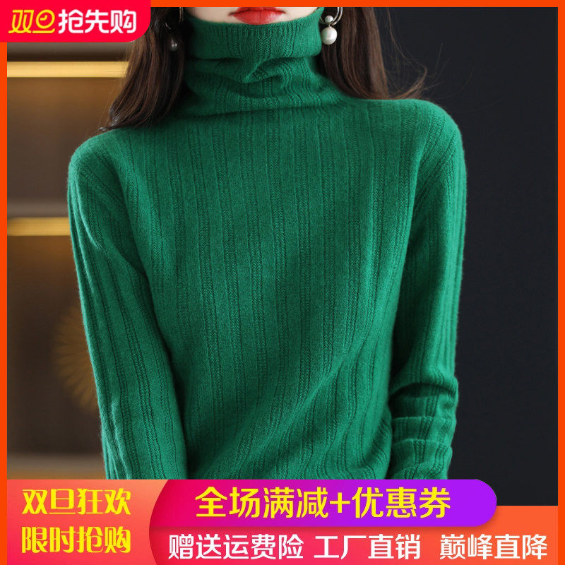 - 高领抽条羊绒衫女