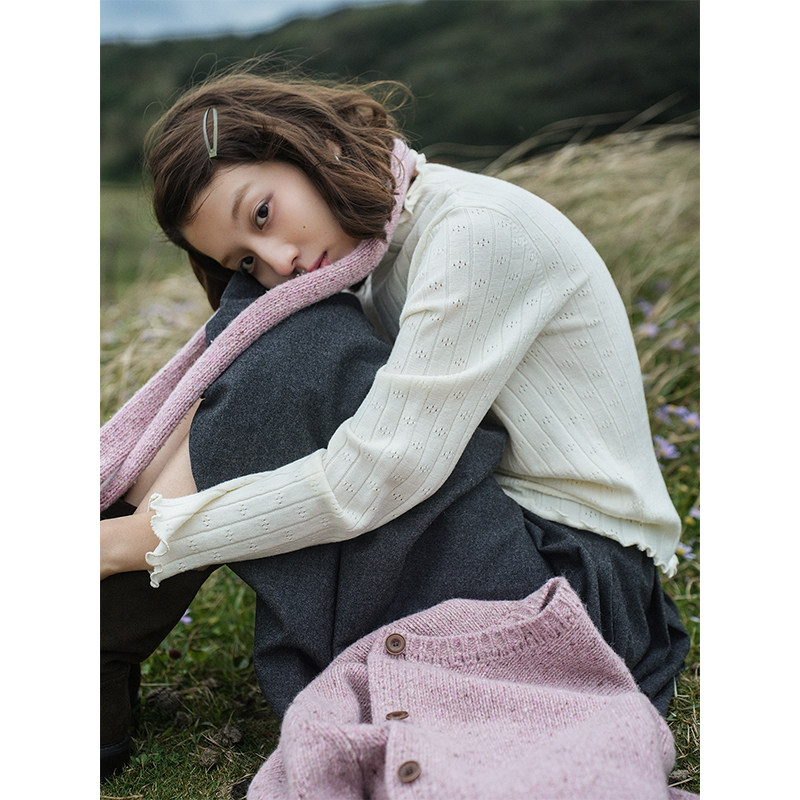 Botanique植物学“小雪花”卷边中领羊毛镂空提花打底毛衣