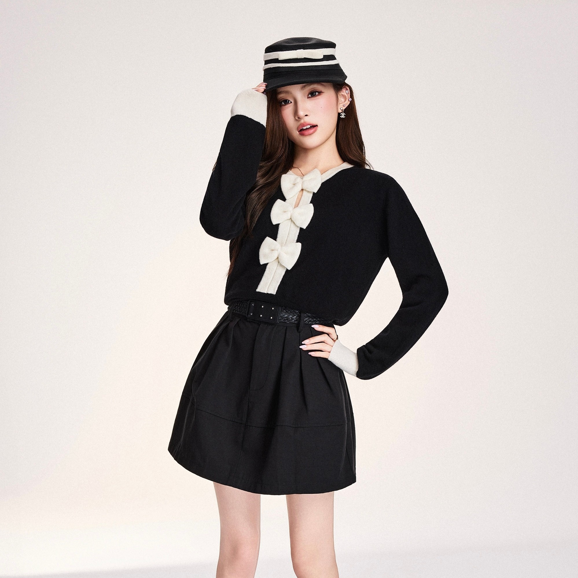 OTEBANBASS 25SS法式圆领复古蝴蝶结撞色镂空毛衣女小香风针织衫