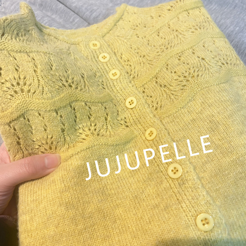 2024针织衫女薄款镂空毛衣圆领蝴蝶领糖果色多巴胺法式慵懒甜美
