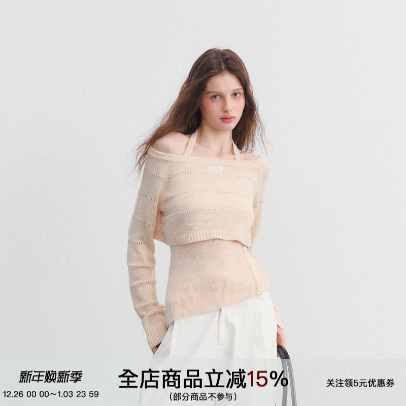 SPEAR YOUTH“小嗲精”两件套修身挂脖针织衫镂空毛衣韩系上衣