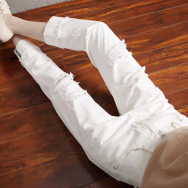 - 韩版破洞小脚裤 女