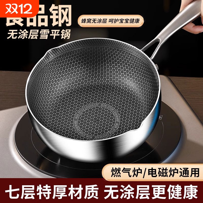 不锈钢奶锅雪平锅汤锅辅食锅家用无涂层不粘煮面锅电磁炉通用炒锅