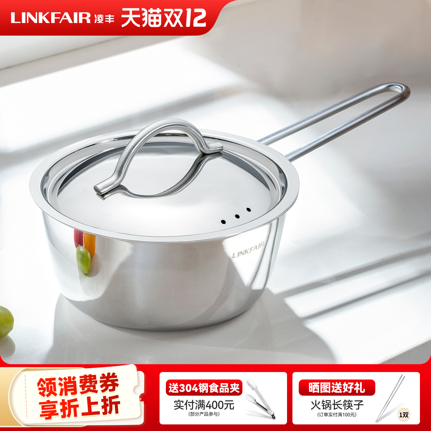 凌丰304不锈钢泼油锅小容量奶锅煎锅汤锅迷你小汤锅单人煮面小锅
