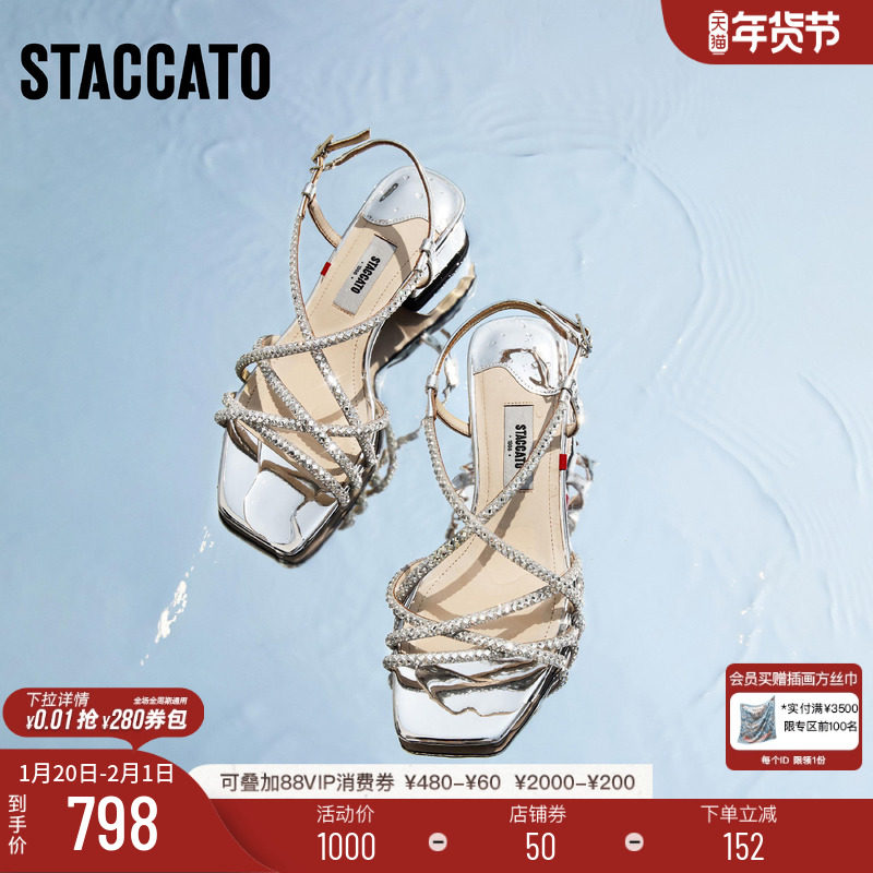 思加图新款苏打碎碎冰仙女鞋罗马凉鞋粗跟女凉鞋EI412BL5