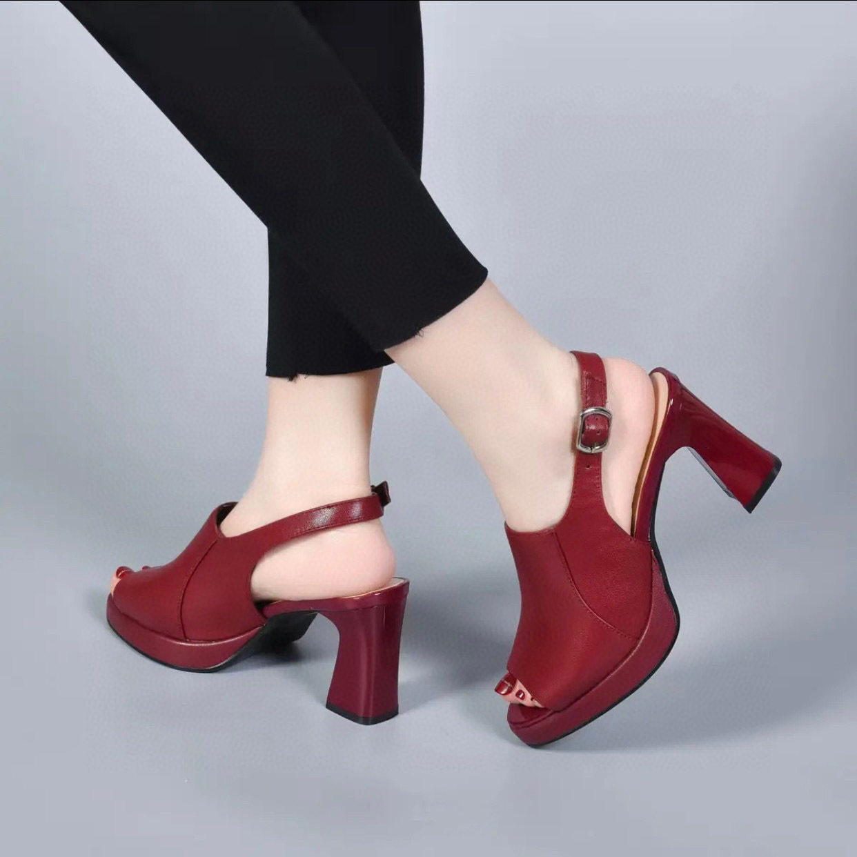- 粗跟真皮女鞋凉鞋