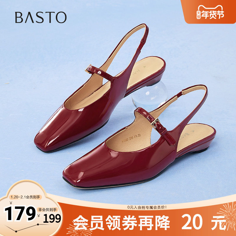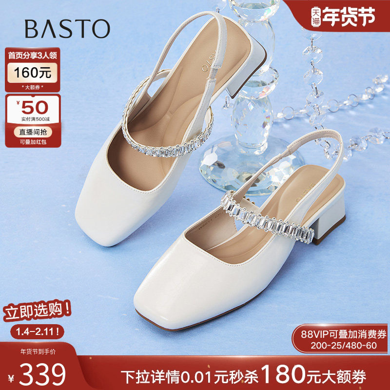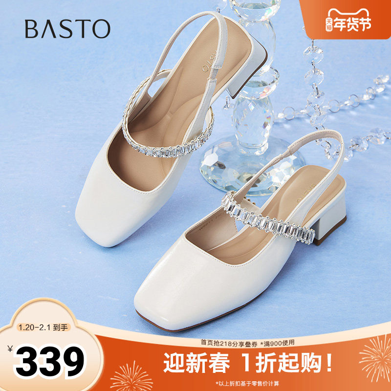 百思图2025夏季商场新款法式玛丽珍后空凉鞋粗跟女凉鞋W6611BH5