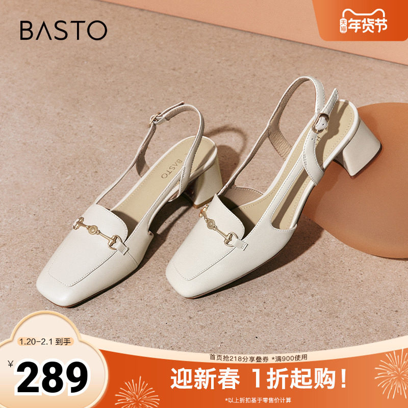 百思图2025夏季新款后空凉鞋简约时尚方头粗跟女凉鞋A5900BH5