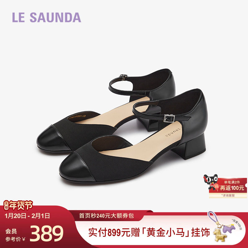 莱尔斯丹新款一字带简约复古小香风通勤粗跟女凉鞋单鞋31402