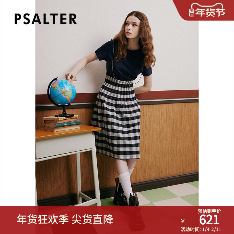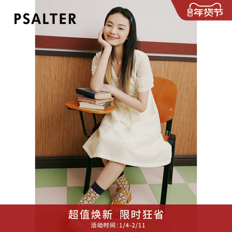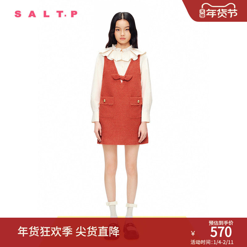 SALT.P可颜2024春荷叶领花纱假两件学院背带A字裙连衣裙