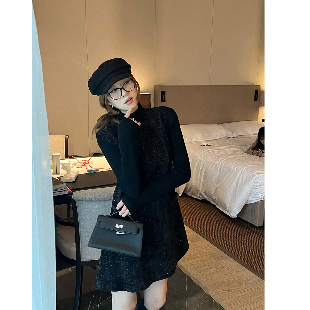 吴童童纯色高领直筒长袖打底连衣裙女秋冬韩系宽松长款内搭A字裙