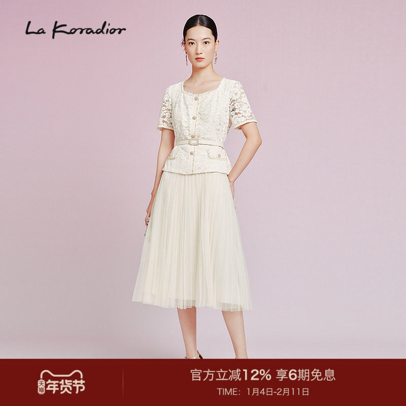 La Koradior拉珂蒂通勤简约钉珠收腰优雅气质法式复古A字裙连衣裙