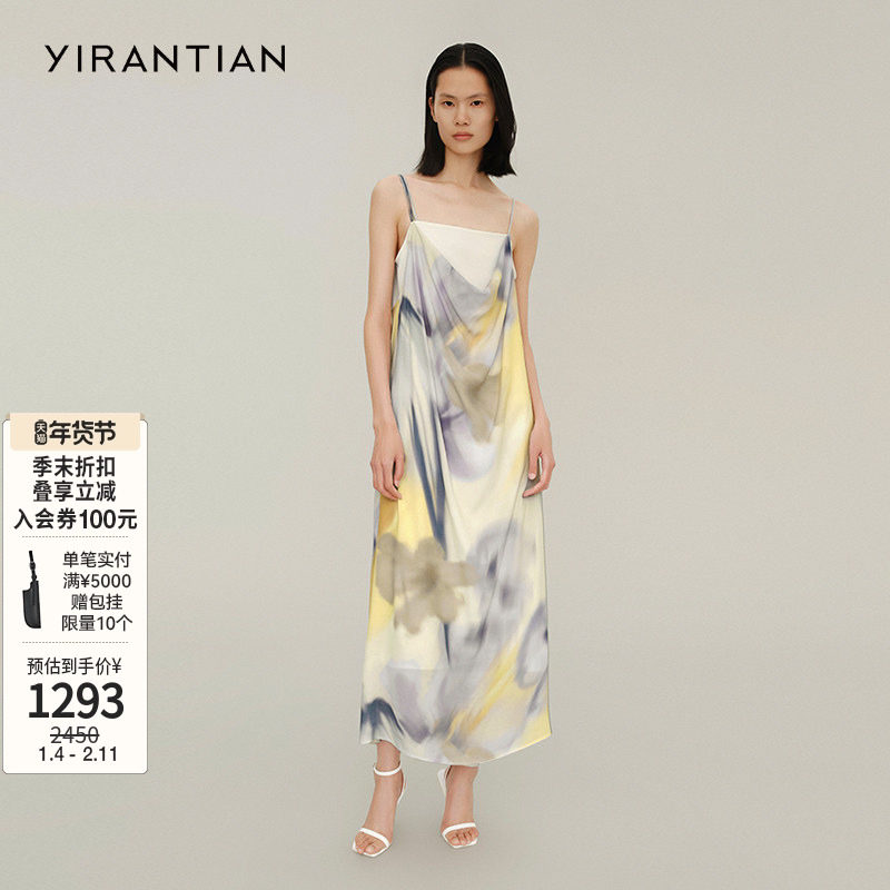 【YIRANTIAN】设计师小众休闲简约时尚双层吊带长款A字裙连衣裙女