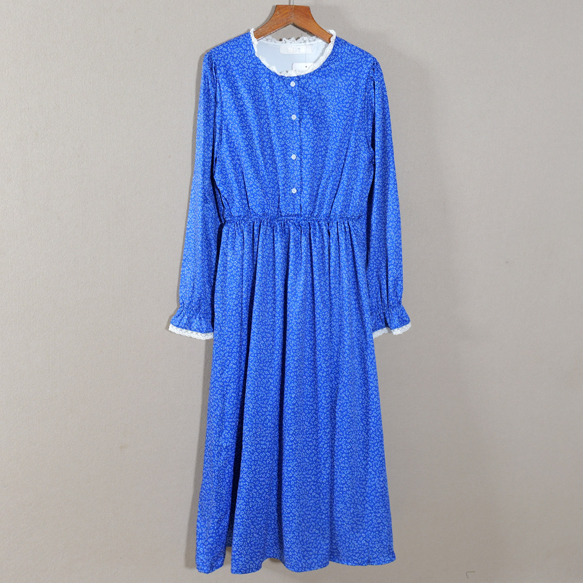 春秋季新款女装休闲风中长款印花长袖圆领A字裙连衣裙子有内衬潮