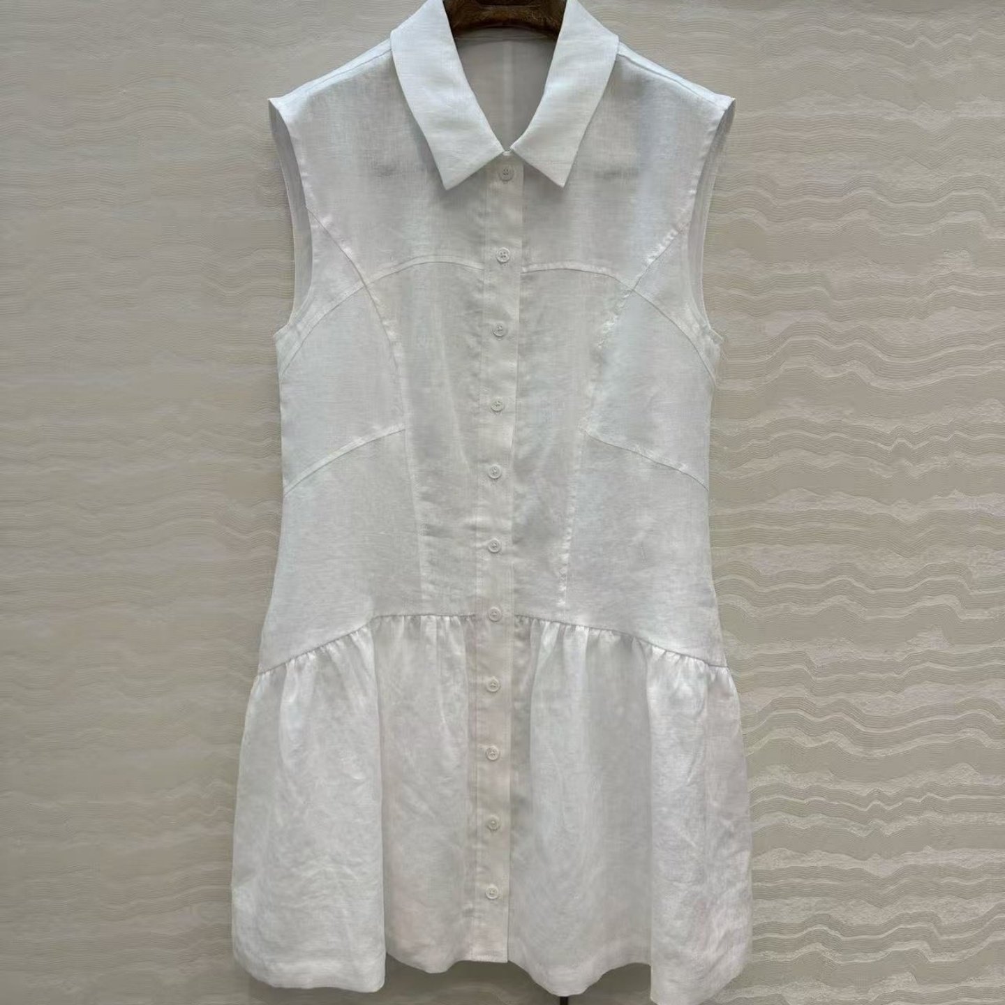 日系新款百搭网球少女落肩袖小翻领气质进口亚麻收腰A字裙连衣裙