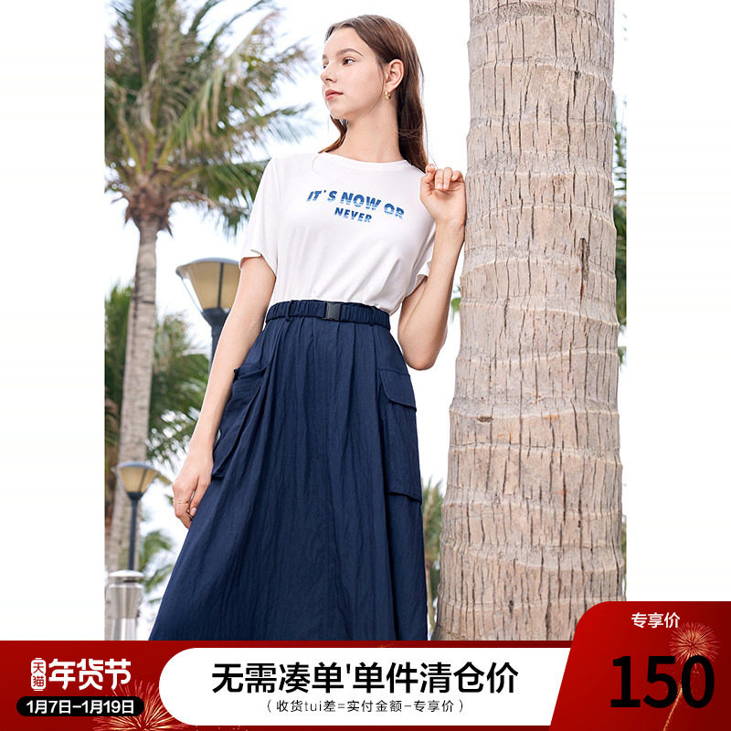 betu百图收腰显瘦假两件拼接T恤裙女2025年夏季新款A字裙连衣裙