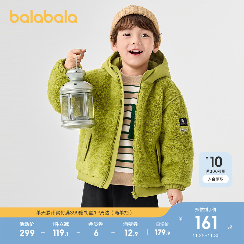 巴拉巴拉童装儿童棉服男童外套秋冬装2025仿羊羔绒上衣百搭小童潮