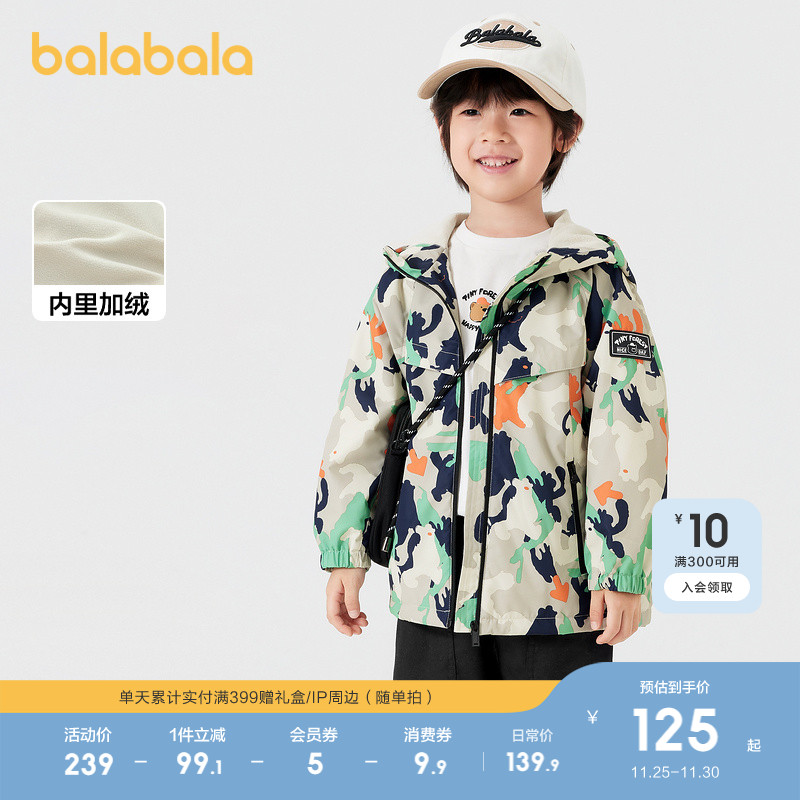 巴拉巴拉童装儿童外套男童春秋装2025软壳衣加绒连帽百搭小童潮酷